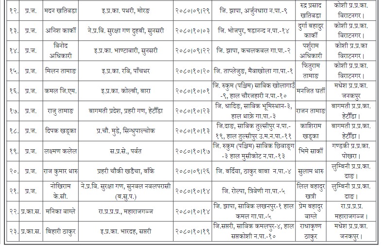 प्रहरी प्रधान कार्यालयका अनुसार प्रहरी सहायक निरीक्षक चार जना, प्रहरी हबल्दार १, प्रहरी जवान १७ र २ जना प्रहरी कार्यालय सहयोगी सहित २३ प्रहरी विगत एक महिनाभन्दा बढी समयदेखि सम्पर्कमा छैनन्।