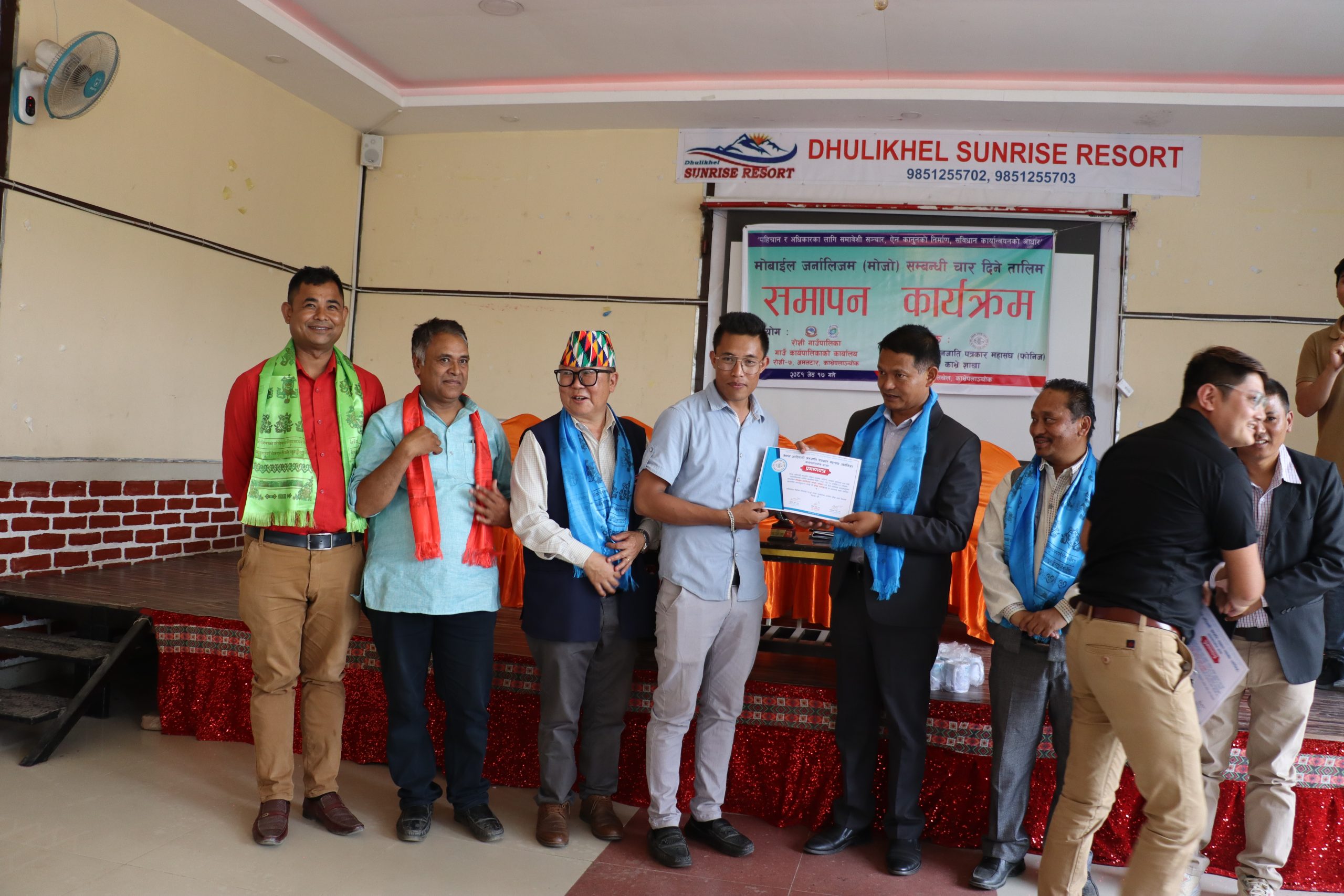काभ्रे । नेपाल आदिवासी जनजाति पत्रकार महासंघ (फोनिज) काभ्रे शाखाको आयोजना तथा रोशी गाउँपालिकाको आर्थिक सहयोग र पब्लिक अफेयर्स रिसर्च एण्ड कम्युनिकेसन्सको प्राबिधिक सहयोगमा चारदिने मोबाइल जर्नालिजम (मोजो) तालिम सम्पन्न भएको छ ।