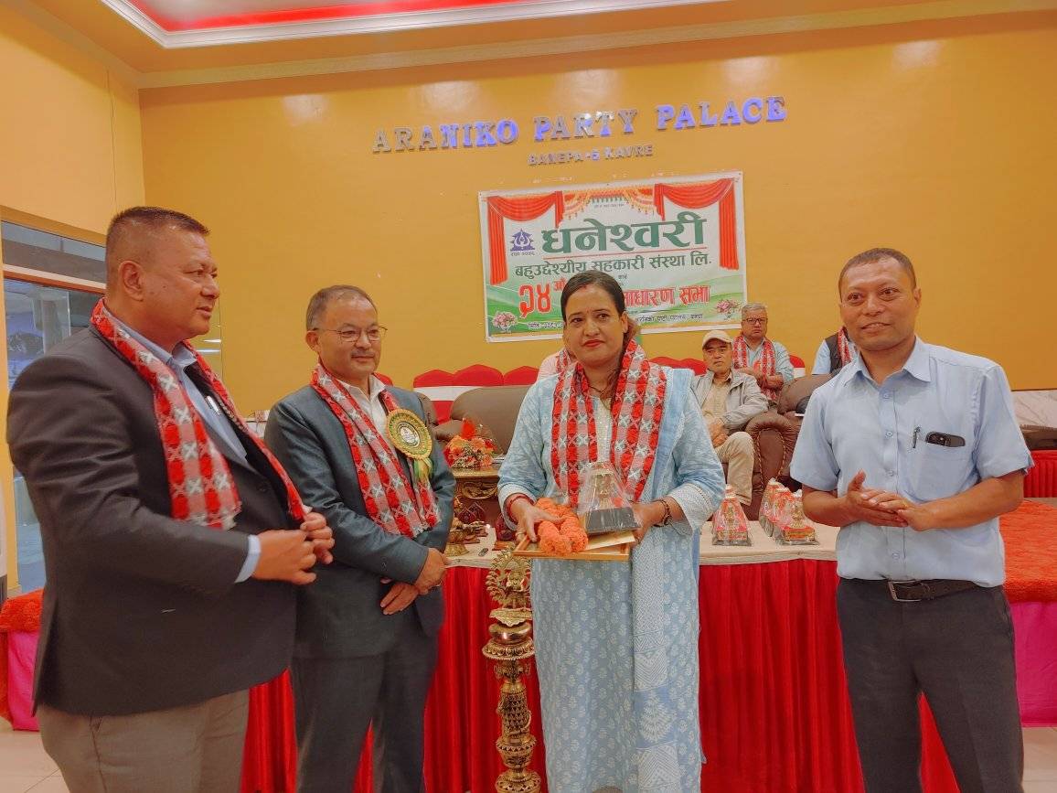 काभ्रे । जिल्लाका बनेपामा धनेश्वरी बहुउदेश्यीय सहकारी संस्थाले गौरवमय २४ औं बार्षिक साधारण सभा सम्पन्न गरेको छ । बनेपा नगरपालिकाका प्रमुख शान्तिरत्न शाक्यले धनेश्वरीको कारोबार सन्तोषजनक रहेको बताए । उनले संस्थाको ब्यालेन्स सिट नाफामा हुनु आर्थिक मन्दीको समयमा पनि संस्थाले बोनस खुवाउनु उल्लेख्यनीय उपलब्धी भएको बताउदै आहा! सहकारी भनेका छन् ।