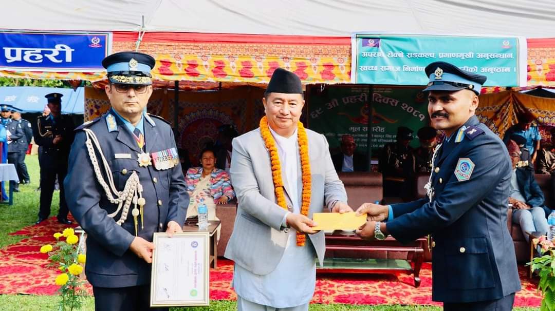 काभ्रे । ६९ औँ प्रहरी दिवस २०८१ को अवसरमा उत्कृष्ट विपद व्यवस्थापक पुरस्कारबाट जिल्ला प्रहरी प्रमुख प्रहरी उपरीक्षक बसुन्धरा खड्का सम्मानित भएका छन ।