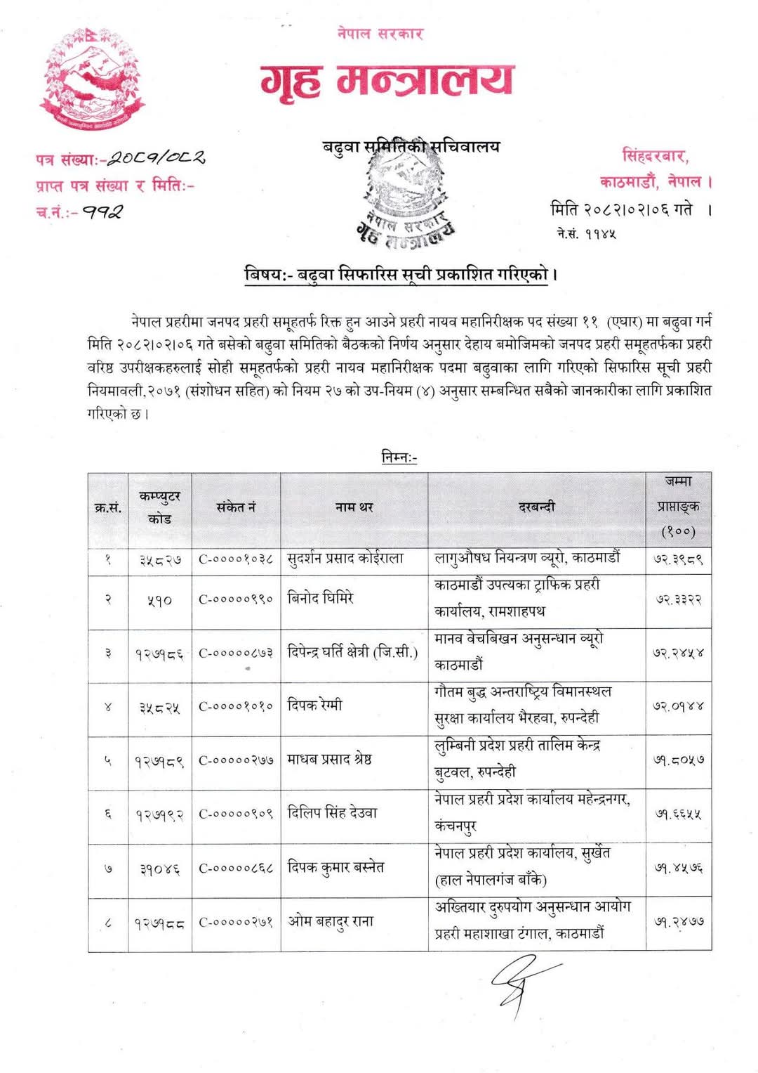 काठमाडौँ । गृह मन्त्रालयले ११ जना एसएसपीहरूलाई डीआईजीपीमा बढुवा सिफारिस गरेको छ ।