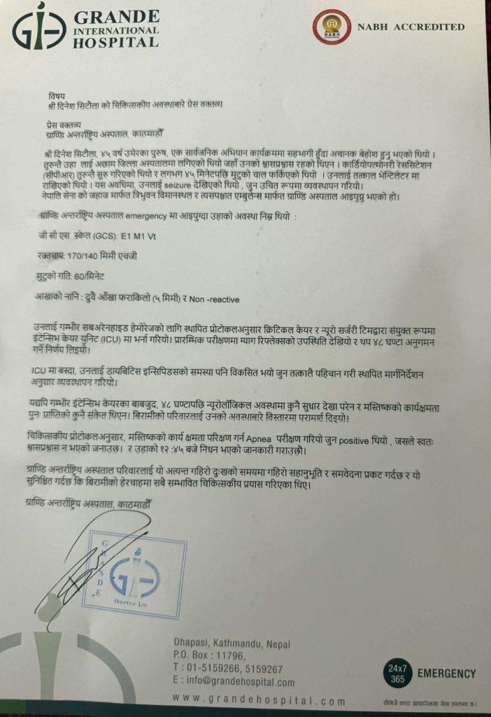 बालेनको चुनावी प्रचारका क्रममा अछाम पुगेका बेला सिटौलाले अचानक बेहोस भएर ढलेपछि उनलाई नेपाली सेनाको हेलिकप्टरमार्फत काठमाडौँ ल्याई ग्राण्डी अस्पतालमा भर्ना गरिएको थियो।