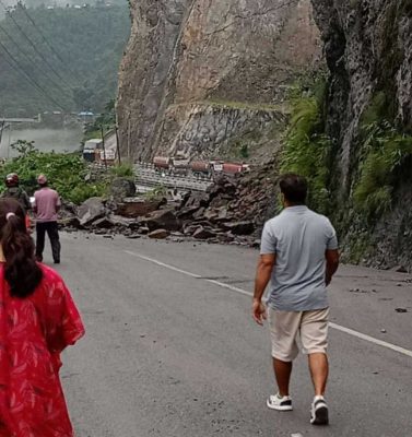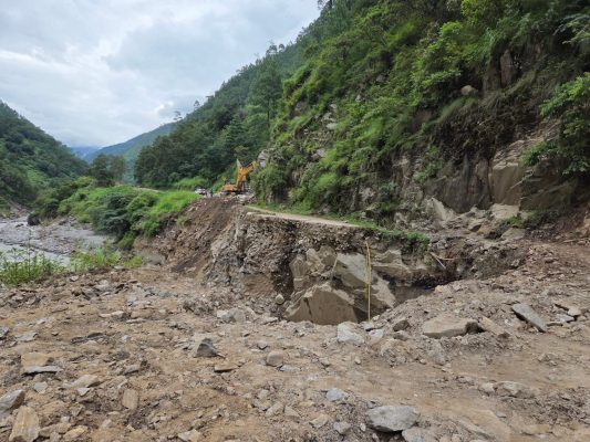 बागलुङको निसेलढोर बर्खामा सडक अवरुद्ध, खाद्यान्न ढुवानीमा समस्या