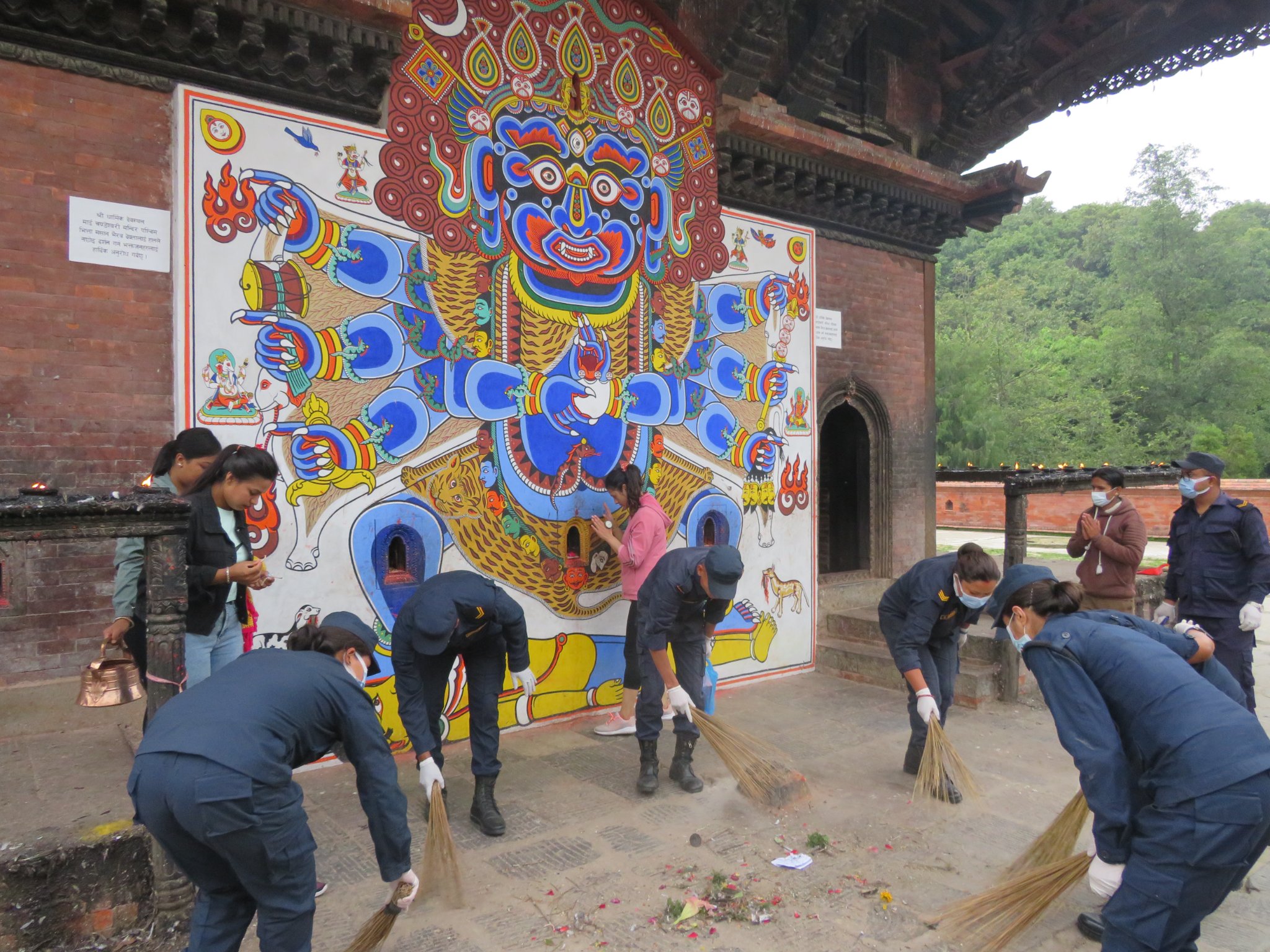 गणतन्त्र दिवसको अवसरमा काभ्रे प्रहरीद्वारा चण्डेश्वरी मन्दिर परिसर सरसफाई