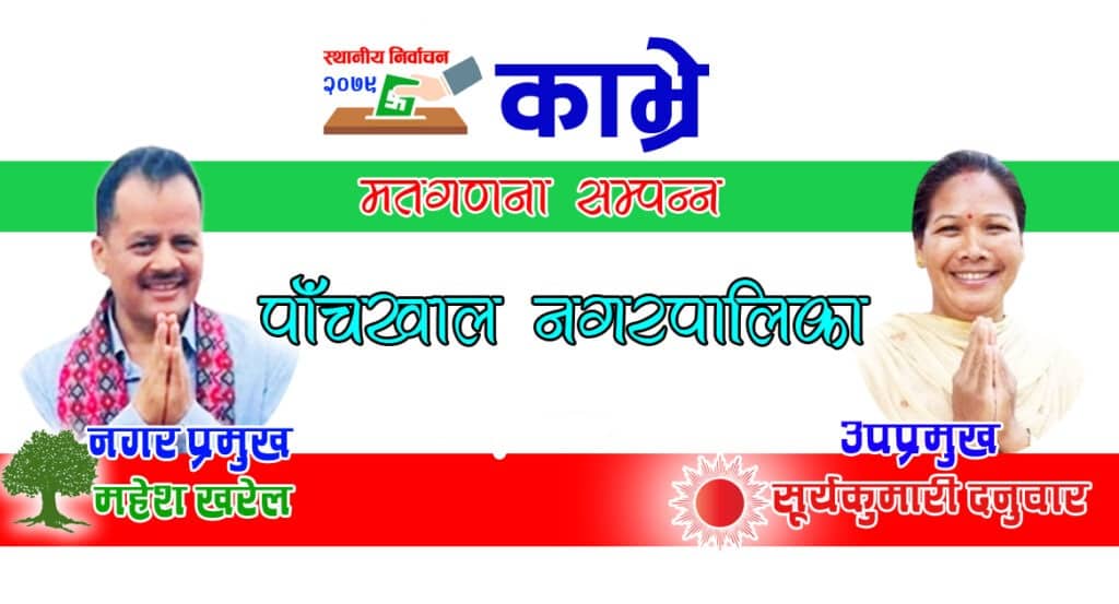 पाँचखालको नगर प्रमुखमा कांग्रेसबाट महेश र उपप्रमुखमा एमालेबाट सूर्यमाया विजयी