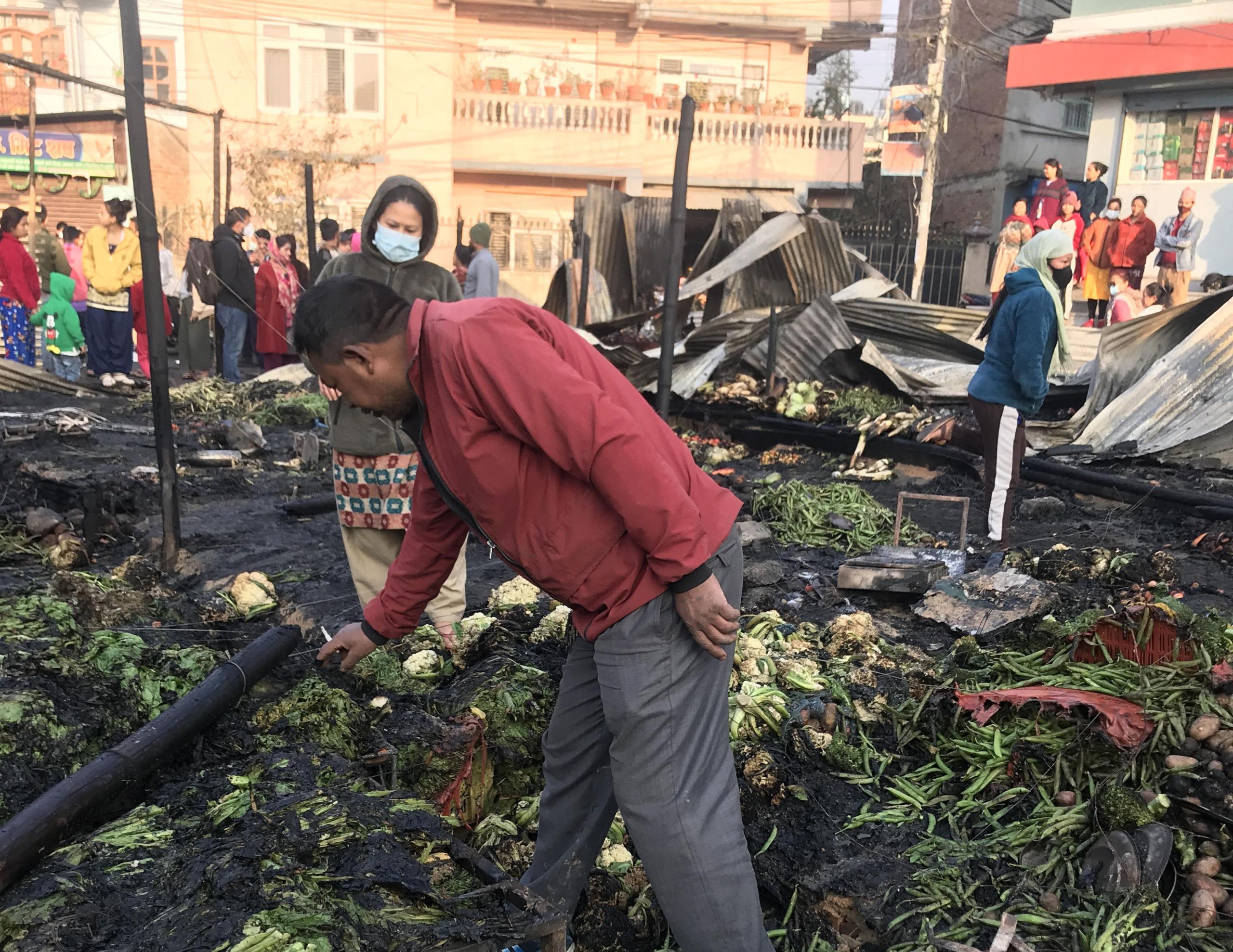ढुङ्गेधाराको तरकारी बजारमा आगलागी, ७० स्टल जल्यो