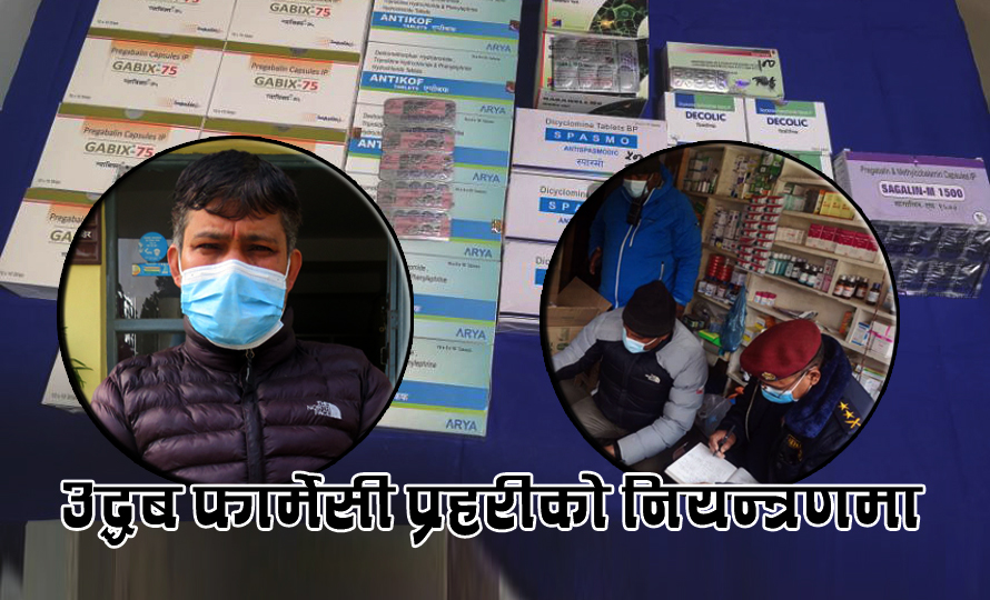 नियन्त्रीत औषधी सहित उद्धव फार्मेसीका सञ्चालक सापकोटा पक्राउ