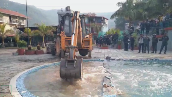 सूचना बिना संरचना हटाएको भन्दै लेकसाइडमा स्थानीयको विरोध