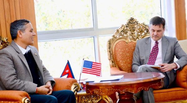 गृहमन्त्री अर्याल र अमेरिकी कार्यवाहक राजदूत अर्बमबीच शिष्टाचार भेट